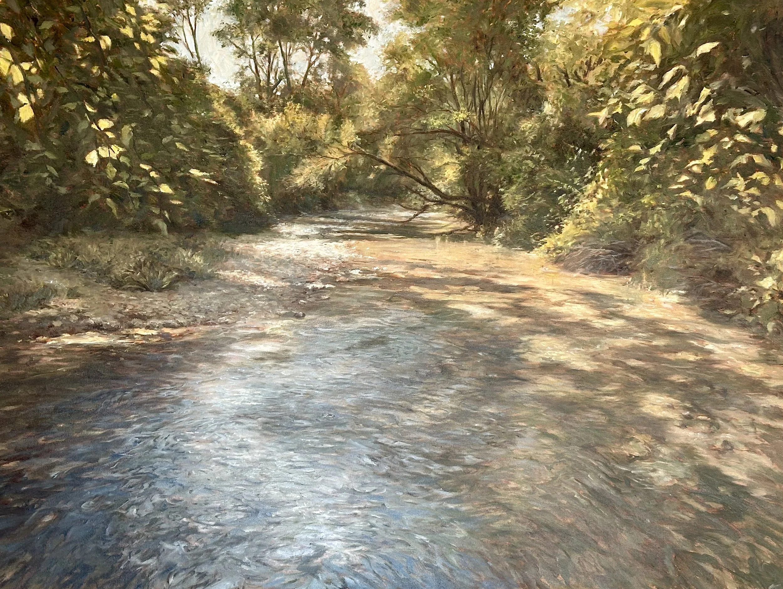 Shop Available Art › Lines of Late Summer Image 1 of 3 Image 2 of 3 Image 3 of 3 Lines of Late Summer $3,456.00 36”x48” oil on canvas. Dappled sunlights with a shallow river at the end of summer. Add to Cart Added! 36”x48” oil on canvas. Dappled sunlights with a shallow river at the end of summer.